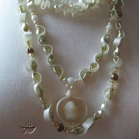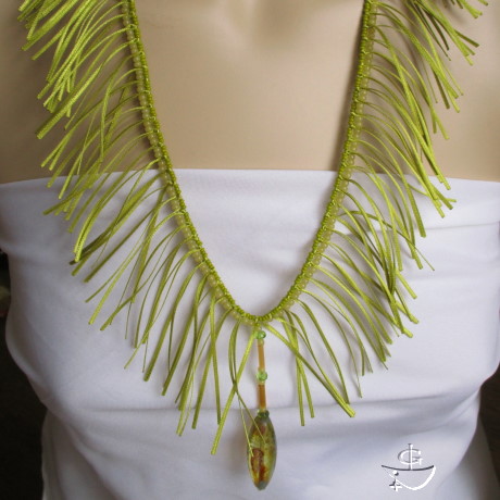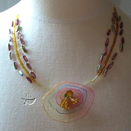 Das Grundgerüst besteht immer aus Glasperlen, deren Vielfalt und Herstellungsweisen schier unerschöpflich sind. Ich verändere Glasperlen manchmal selbst und versuche für sie ungewöhnliche Strukturen in dem Schmuckstück zu finden.